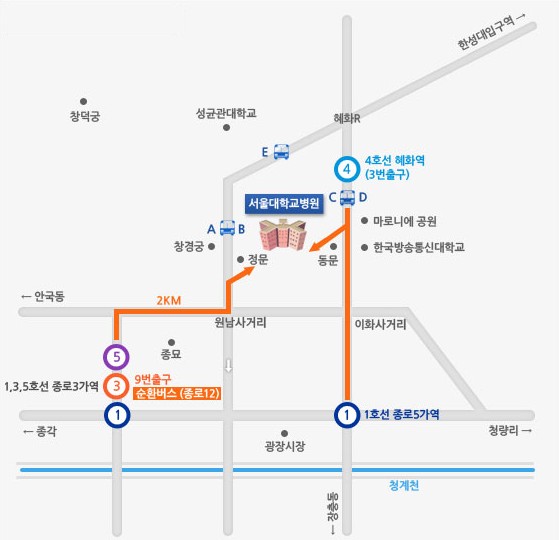 | 주요정차역 : 서울대학교병원본관 → 원남로터리 → 종로5가입구 → 종로4가 → 종로3가역(9번출구) → 돈화문 → 원남로터리 → 서울대학교치과대학 → 서울대장례식장 → 혜화동로터리 → 혜화역3번출구 → 서울대학교병원본관 |